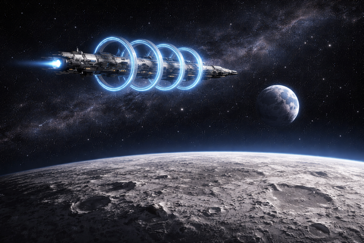 旅程分为两个阶段:先抵达月球附近的中继点进行能量补给与系统自检,然后启动星际穿梭。